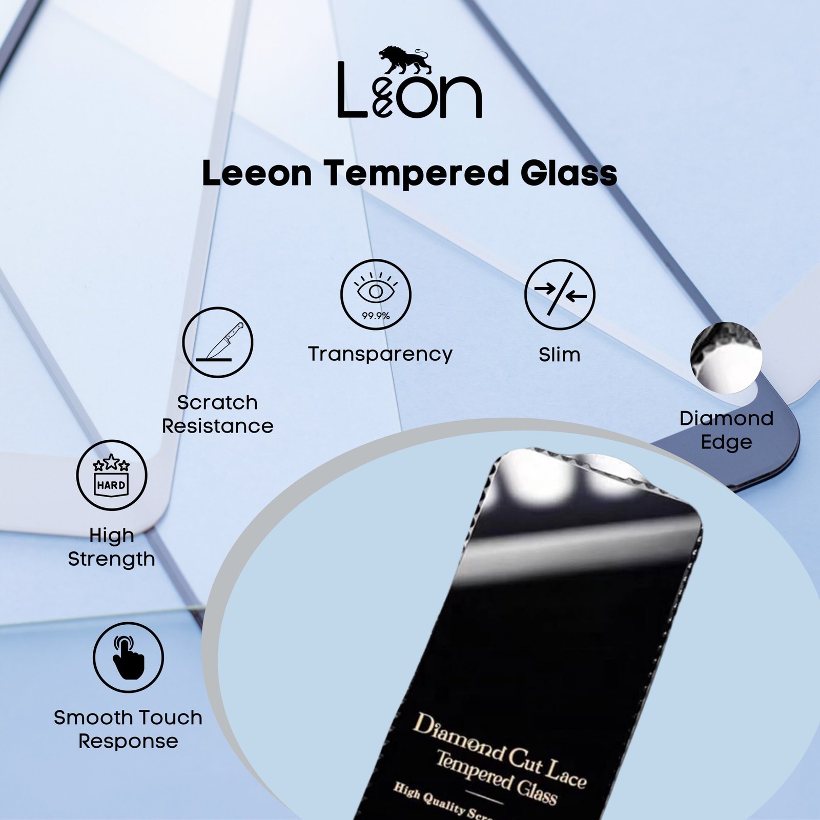 iPhone 15 Plus – 9H Diamond Cut Glass, Introducing Leeon 9H Diamond Cut tempered glass for device: – Material Strength:…